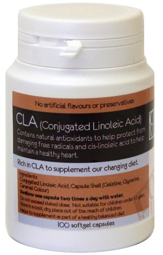 100 CLA (Conjugated Linoleic Acid) 1000mg Softgel Capsules - CLA is a naturally rich source of conjugated linoleic acid derived from safflower oil to supplement our changing diet. CLA is believed to reduce body fat and increase lean muscle, when regular intake of supplements is coupled with regular exercise. CLA contains natural antioxidants to help protect from damaging free radicals and cis-linoleic acid to help maintain a healthy heart.