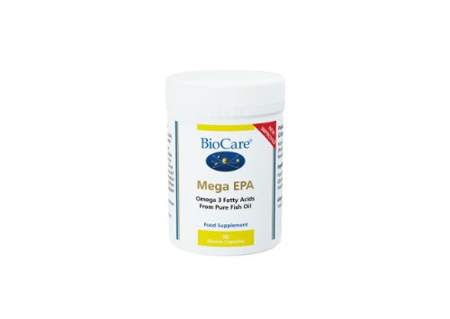BioCare Mega EPA 1000 90 Capsules - Mega EPA is a high potency fish oil capsule providing omega-3 fatty acids in a natural triglyceride form, naturally concentrated using NEO-3TM - a unique lipase enzyme process which results in a fish oil of outstanding quality and high potency.