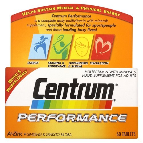 Centrum Performance Multivitamin & Minerals Plus Ginseng & Ginkgo Biloba Supplement 60 Tablets - Centrum Performance is a comprehensive formula of vitamins and minerals with two natural herbs: ginseng and ginkgo biloba. It is cleverly balanced by our nutritionists with higher levels of antioxidants and B vitamins to help protect against free radical damage and unlock energy. Centrum Performance helps sustain vitality and may help maintain concentration and short term memory.