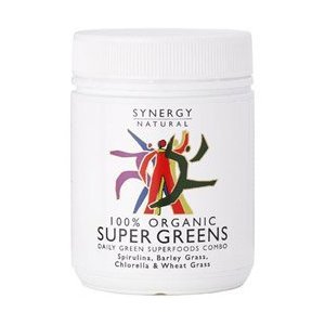 Synergy Natural Organic Super Greens Powder - 200g - Synergy Natural Organic Super Greens is a synergistic blend of Nature s most nutrient dense green superfoods. All organically certified, Spriulina (33%), Wheatgrass and Barley Grass (both 25%) and Chlorella (16%) provide a wide spectrum of highly bioavaialable whole food nutrients, balanced by nature and easily absorbed. Spirulina and Chlorella are both fresh water microscopic plants providing high levels of nutrients and containing chlorophyll, helping to clense and detoxify the body. Barley Gr